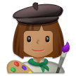 | კოდირება | U+1F469 1F3FD 200D 1F3A8 1F3FD - 🏽 კანის საშუალო ტონალობა 200D -  ნულოვანი სიგანე სადურგლო 1F3A8 - 🎨 ძაფის კოჭა |