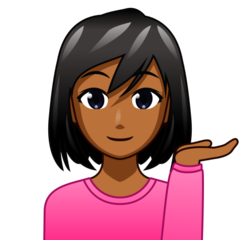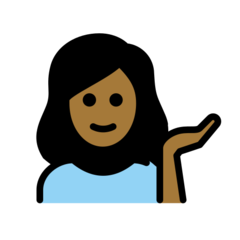 | მნიშვნელობა | ქალი დახრილი ხელით: საშუალოდან მუქამდე კანის ტონალობა |