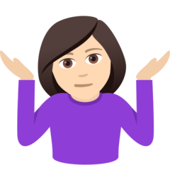 | კოდირება | U+1F937 1F3FB 200D 2640 1F937 - 🤷 მხრების აჩეჩვა - კაცი |