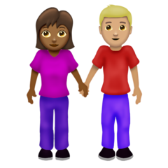 | მნიშვნელობა | ხელჩაკიდებული კაცი და ქალი: საშუალოდან მუქამდე კანის ტონალობა, ღიადან საშუალომდე კანის ტონალობა |