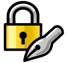 | მნიშვნელობა | ჩაკეტილი საკეტი და კალამი |